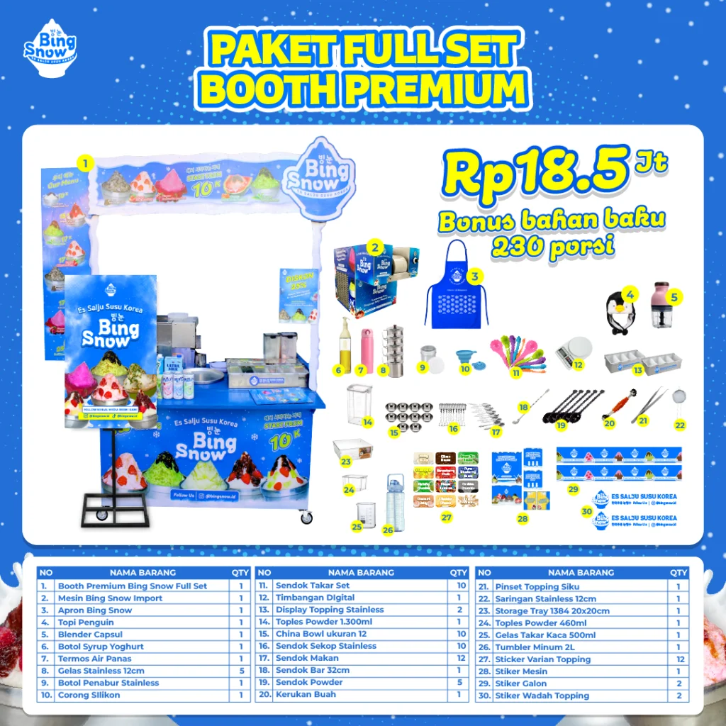 Bingsnow merupakan pioneer Es Salju Susu Korea dengan konsep Street Food yang disajikan dengan berbagai topping. Dengan produk utama es yang sudah terbukti bukan musiman dan disukai semua kalangan. Bing Snow berpeluang menjadi bisnis yang disukai masyarakat dengan operasional yang sederhana dan siap meramaikan market es di