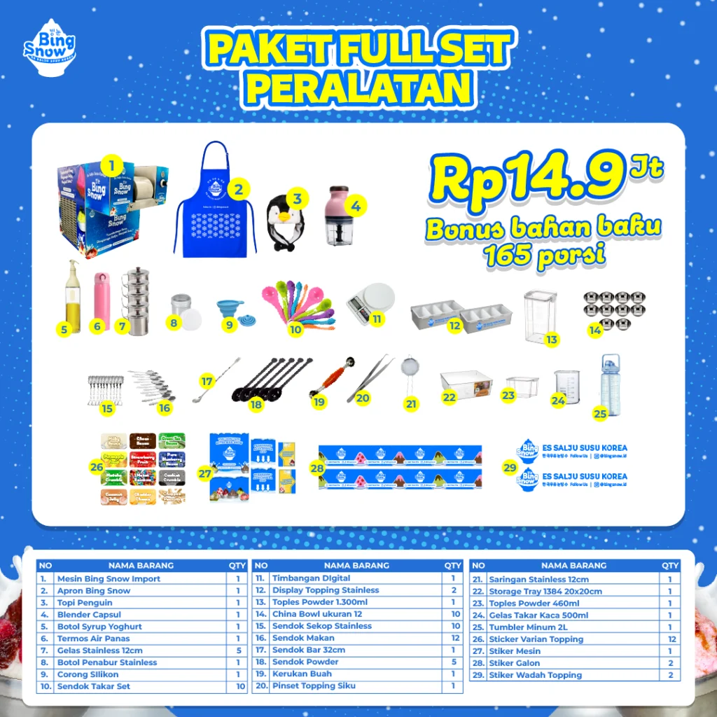 Dengan dukungan logistik yang kuat, bahan baku dan perlengkapan untuk usaha BingSnow dapat dikirim ke seluruh pelosok Indonesia, memungkinkan mitra membuka usaha ini di mana saja, dari kota besar hingga kecil.